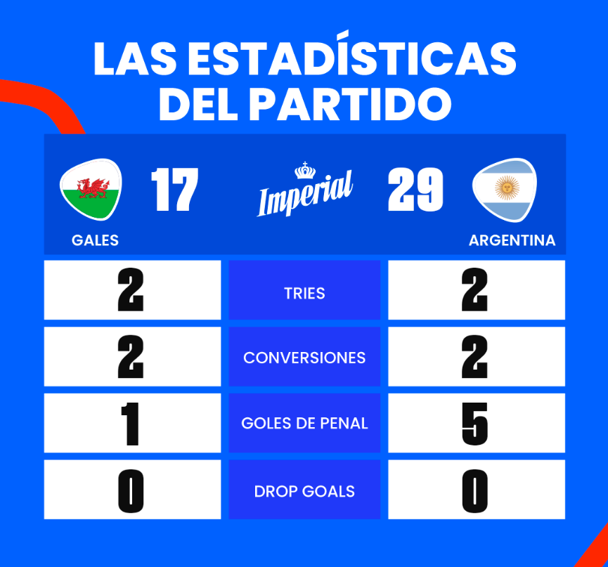 Los Pumas vencieron 29 a 17 a Gales y se clasificaron a las Semifinales del Mundial de Rugby. Jugarán dicha instancia por tercera vez (la última había sido en el año 2015). Enfrentarán al ganador de Irlanda vs Nueva Zelanda.